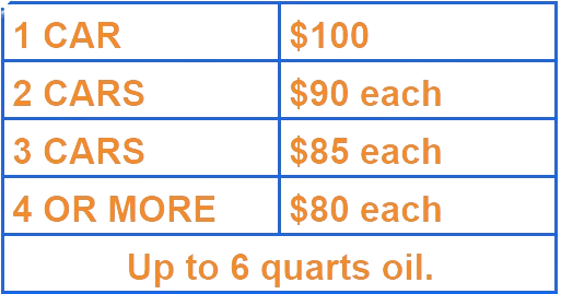 More than 6 quarts will result in a per quart charge generally around $5.50 a quart. If you have to downgrade for whatever reason you'll see a small savings. Only racing applications will see a significant upcharge passed along. Call, text, or email with qustions or book today.